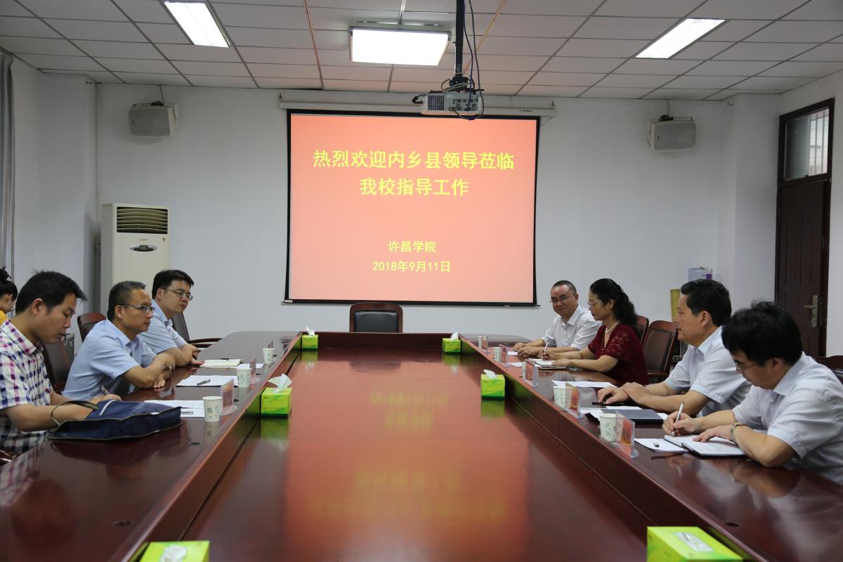 9月11日,内乡县人大常委会副主任李建文带领内内乡扶贫办工作人员到许昌学院进行校地结对帮扶调研,许昌学院工会主席高金星、党政办主任潘春彩、校地合作办公室主任郭超峰及相关工作人员参加。工会主席高金星对内乡县领导到我校来对接调研扶贫工作表示欢迎。