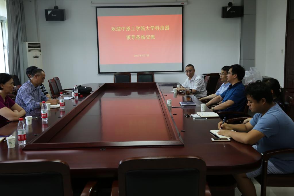 6月7日,中原工学院大学科技园园区管委会主任李学新主任一行四人到我校大学科技园考察交流。