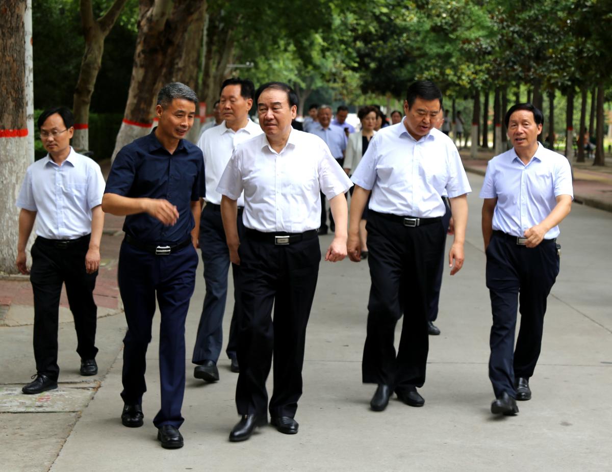 省人大常委会教科文卫委员会主任朱清孟、副主任委员訾新建、省人大侨务委员会副主任委员蔡永礼、省人大常委会副秘书长韩长峰、省教育厅副厅长毛杰、省科技厅副厅长夏培臣等到我校考察调研。院长岳修峰、副院长黄怡俐,许昌市人大常委会主任王堃、副主任艾祥涛、副市长赵淑红等有关领导陪同调研。(图文 宁智沛)